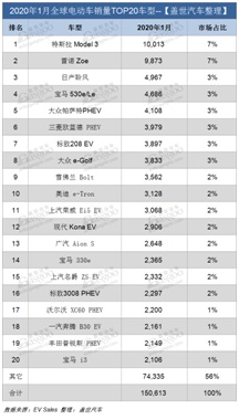 销量TOP 20 品牌:特斯拉失守 宝马夺冠