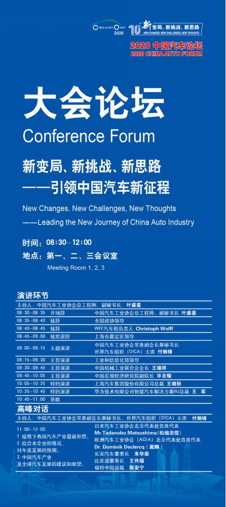对应十四五汽车产业发展规划,协会启动了2020年中国汽车论坛,并于2020814日上午在上海嘉定喜来登酒店举办大会主论坛。