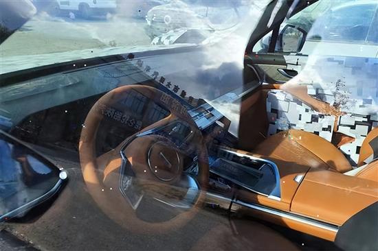 在车身侧面能够看到,整车的车身长度是非常长的,C柱的后方还有很大的空间。不过由于C柱后方带有比较多的伪装,所以暂时还不能确定后部的设计样式。其它方面,目前可以看到的是隐藏式门把手和多幅状的双色轮毂设计。