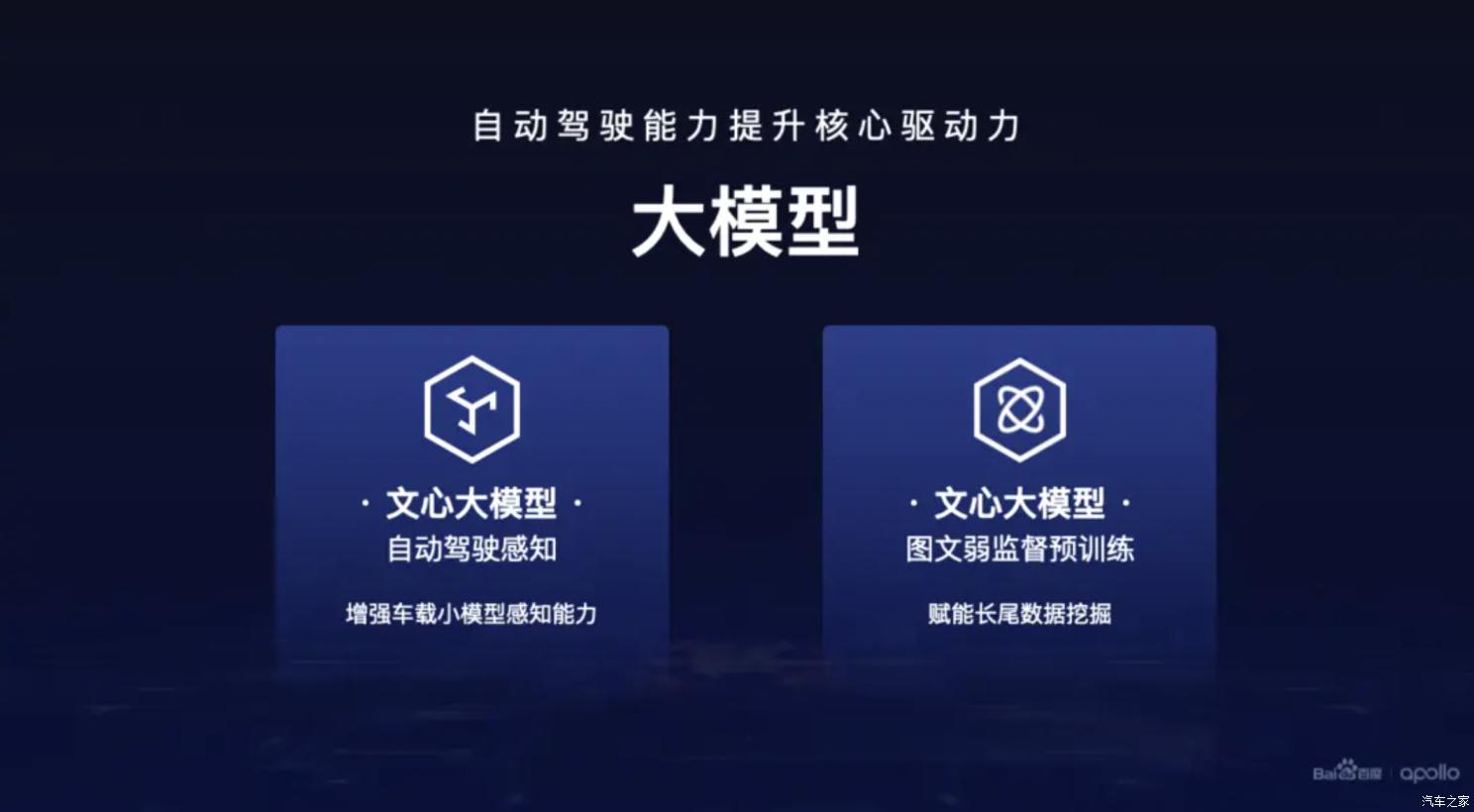 百度自动驾驶技术专家王井东表示,文心大模型-图文弱监督预训练模型,背靠文心图文大模型数千种物体识别能力,大幅扩充自动驾驶语义识别数据,如:特殊车辆(消防车、救护车)识别、塑料袋等,自动驾驶长尾问题解决效率指数级提升;此外,得益于文心大模型-自动驾驶感知模型10亿以上参数规模,通过大模型训练小模型,自动驾驶感知泛化能力显著增强。