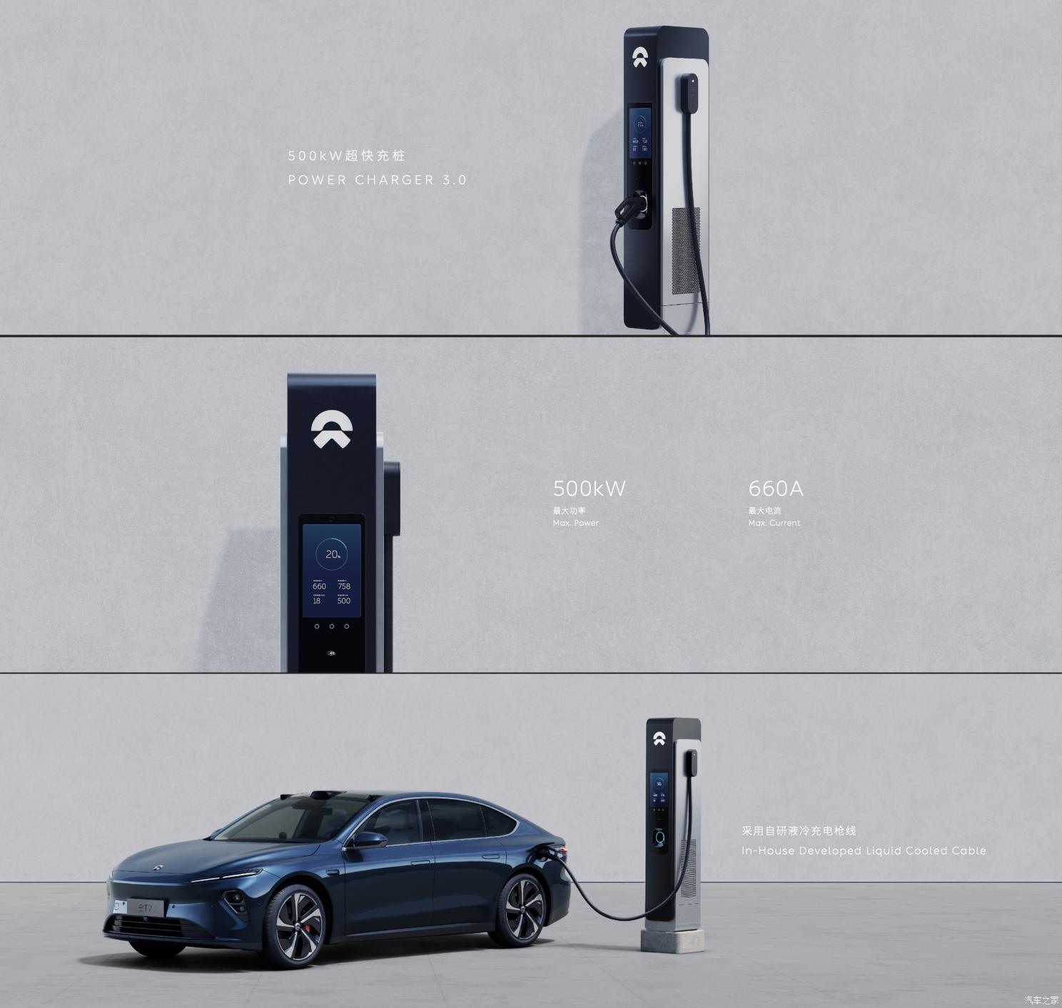 与产品相配套的是蔚来在充电方面的布局,此次NIO Day上,蔚来已正式发布了第三代换电站与500kW超快充。相比第二代换电站,第三代换电站换电时间缩短20%,单站日服务能力将达到408次,提升30%;同时,电池仓位增加到21个,日服务次数可达408次,比二代站提升30%